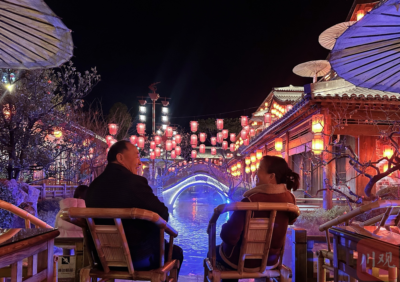 12月13日晚,距成都市区约一小时车程的都江堰青城山脚下,多个温泉景区人气旺盛,成为市民与游客冬季休闲的热门选择。与市区夜晚的清冷景象不同,这里灯光温暖、热气缭绕,形成了以温泉为核心,融合文化演出、美食体验与户外影音的复合型消费场景。