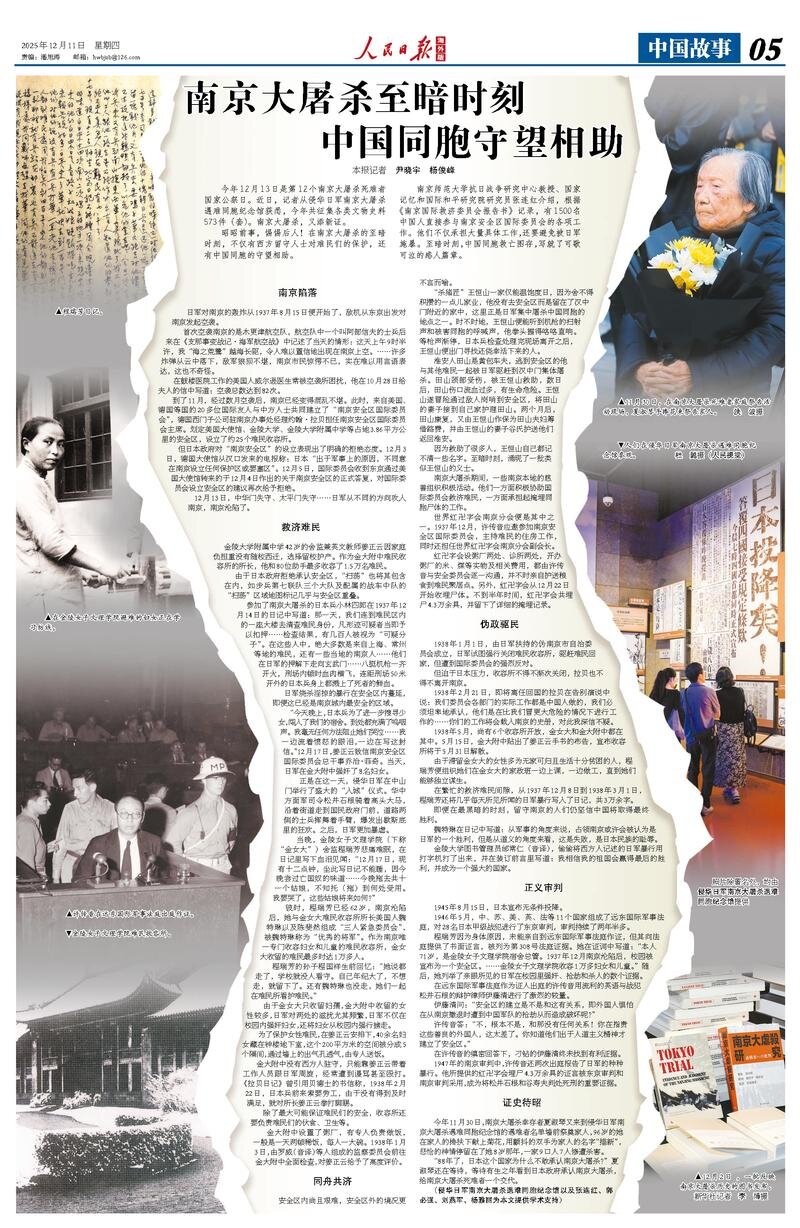 南京师范大学抗日战争研究中心教授、国家记忆和国际和平研究院研究员张连红介绍,根据《南京国际救济委员会报告书》记录,有1500名中国人直接参与南京安全区国际委员会的各项工作。他们不仅承担大量具体工作,还要避免被日军施暴。至暗时刻,中国同胞救亡图存,写就了可歌可泣的感人篇章。